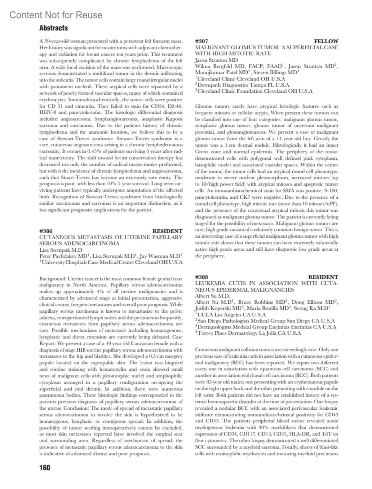 Journal of Cutaneous Pathology 39(1):p 160-161, January 2012.