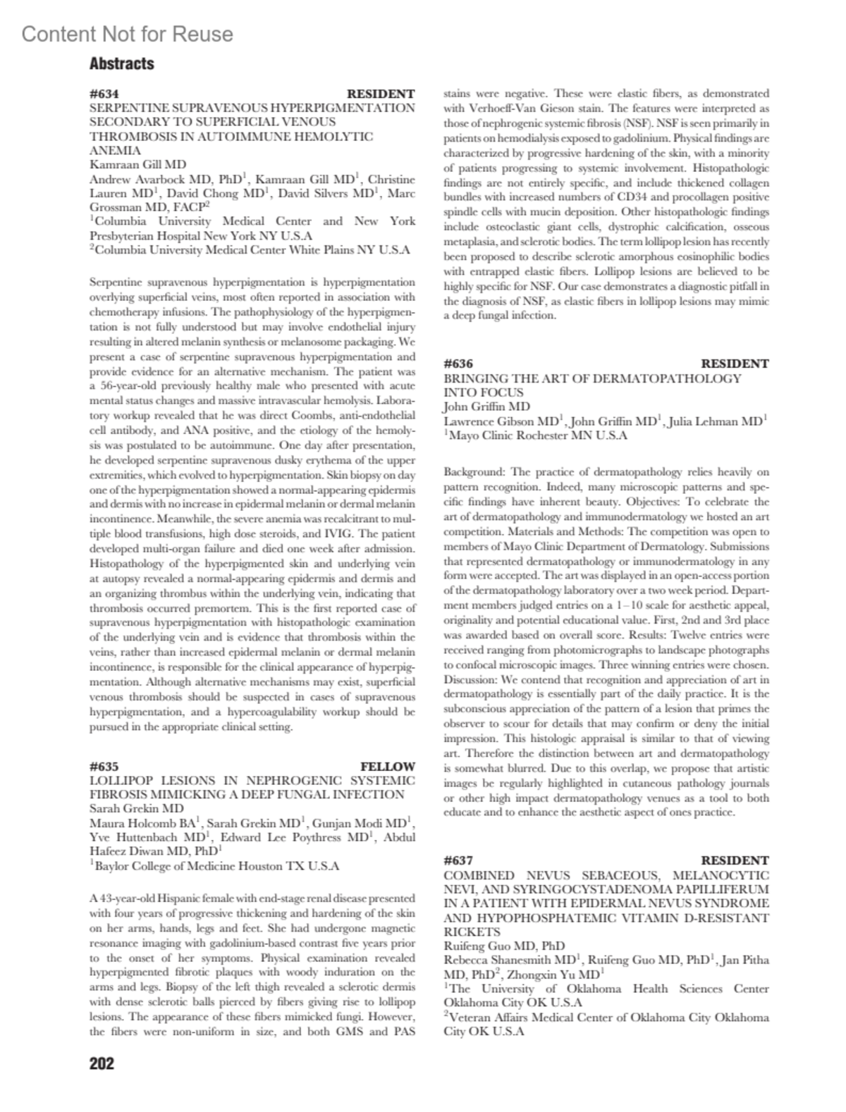 Journal of Cutaneous Pathology 39(1):p 202, January 2012.