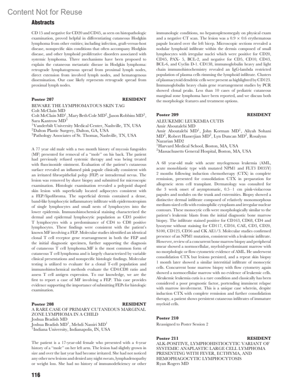 Journal of Cutaneous Pathology 40(1):p 117, January 2013.