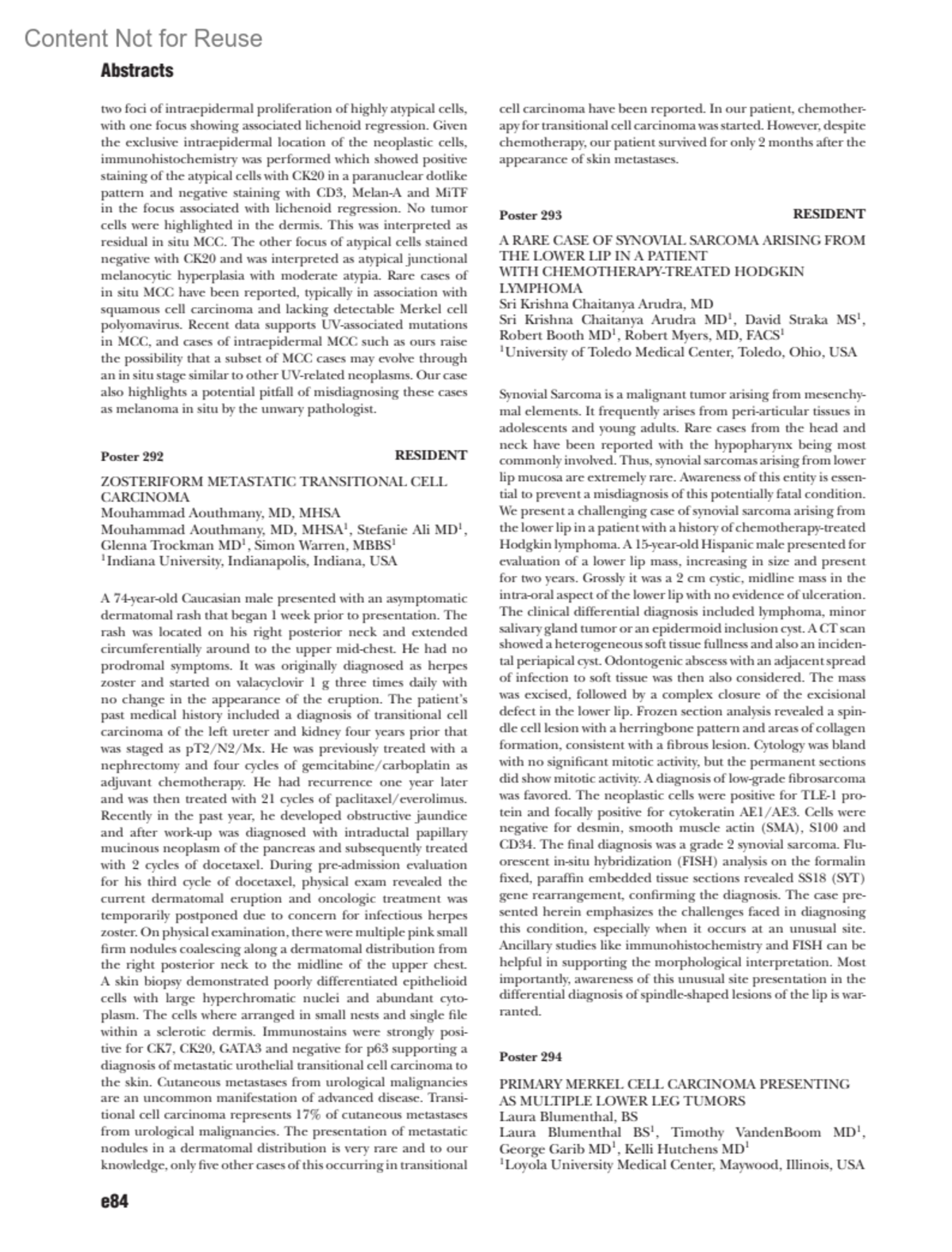 Journal of Cutaneous Pathology 43(1):p e84, January 2016.