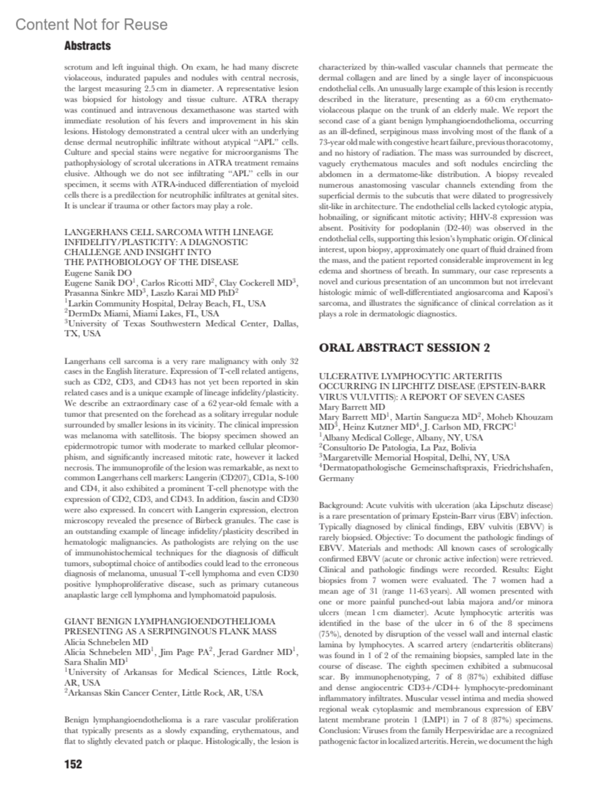Journal of Cutaneous Pathology 41(2):p 152, February 2014.