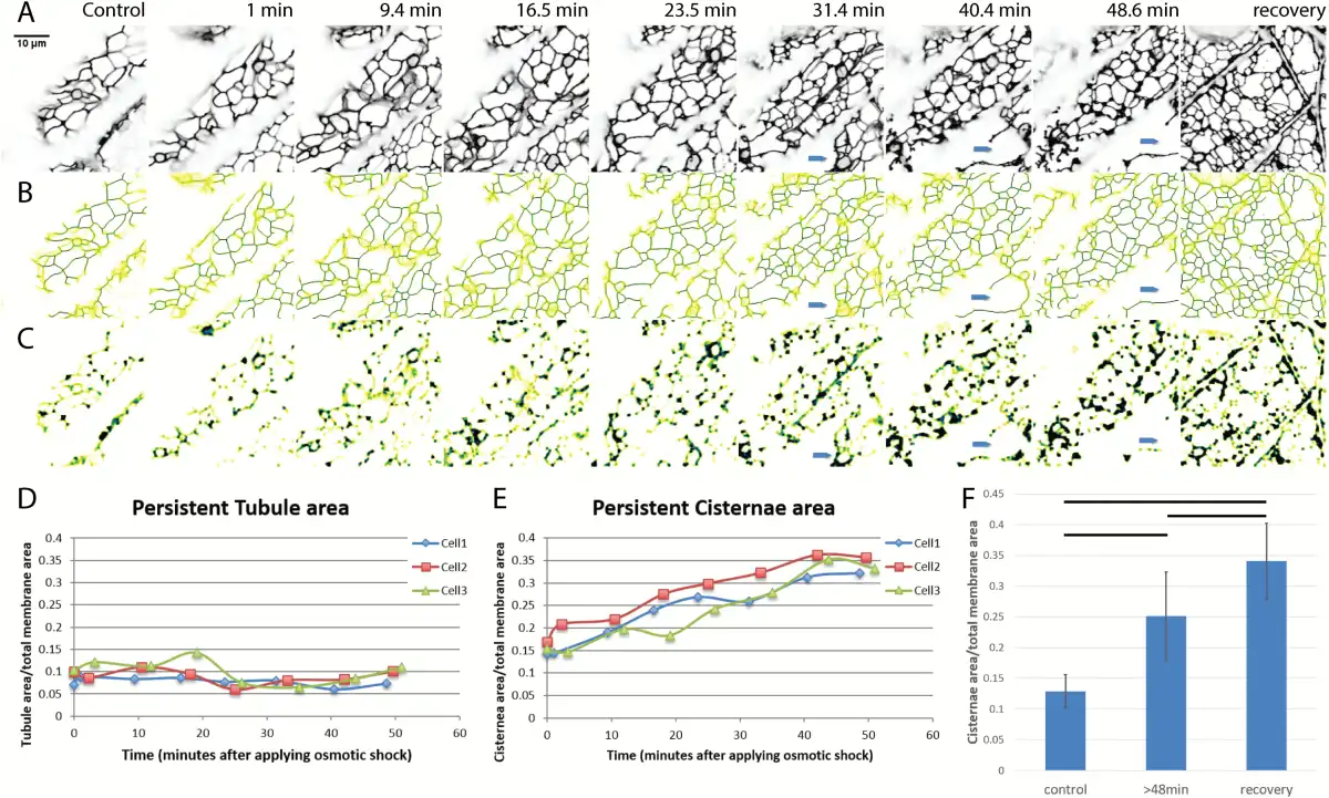 ER undergoes increasing persistent cisternalization during osmotic shock