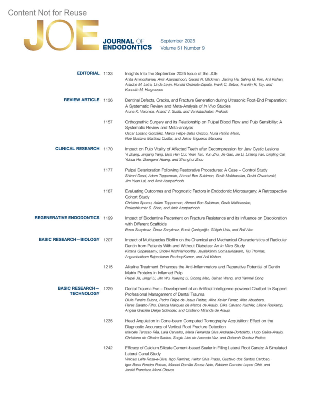 MiscellaneousTable of ContentsJournal of Endodontics 51(9):p A11-A12, September 2025. | DOI: 10.1016/S0099-2399(25)00475-3Copyright © 2025 &NA;
