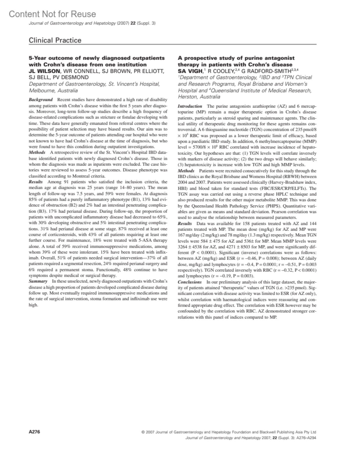 Journal of Gastroenterology & Hepatology 22:p A289, October 2007.