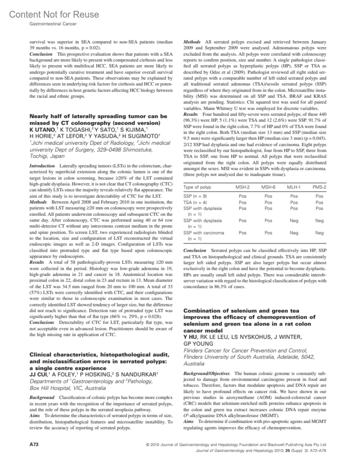 Journal of Gastroenterology & Hepatology 25:p A73, October 2010.