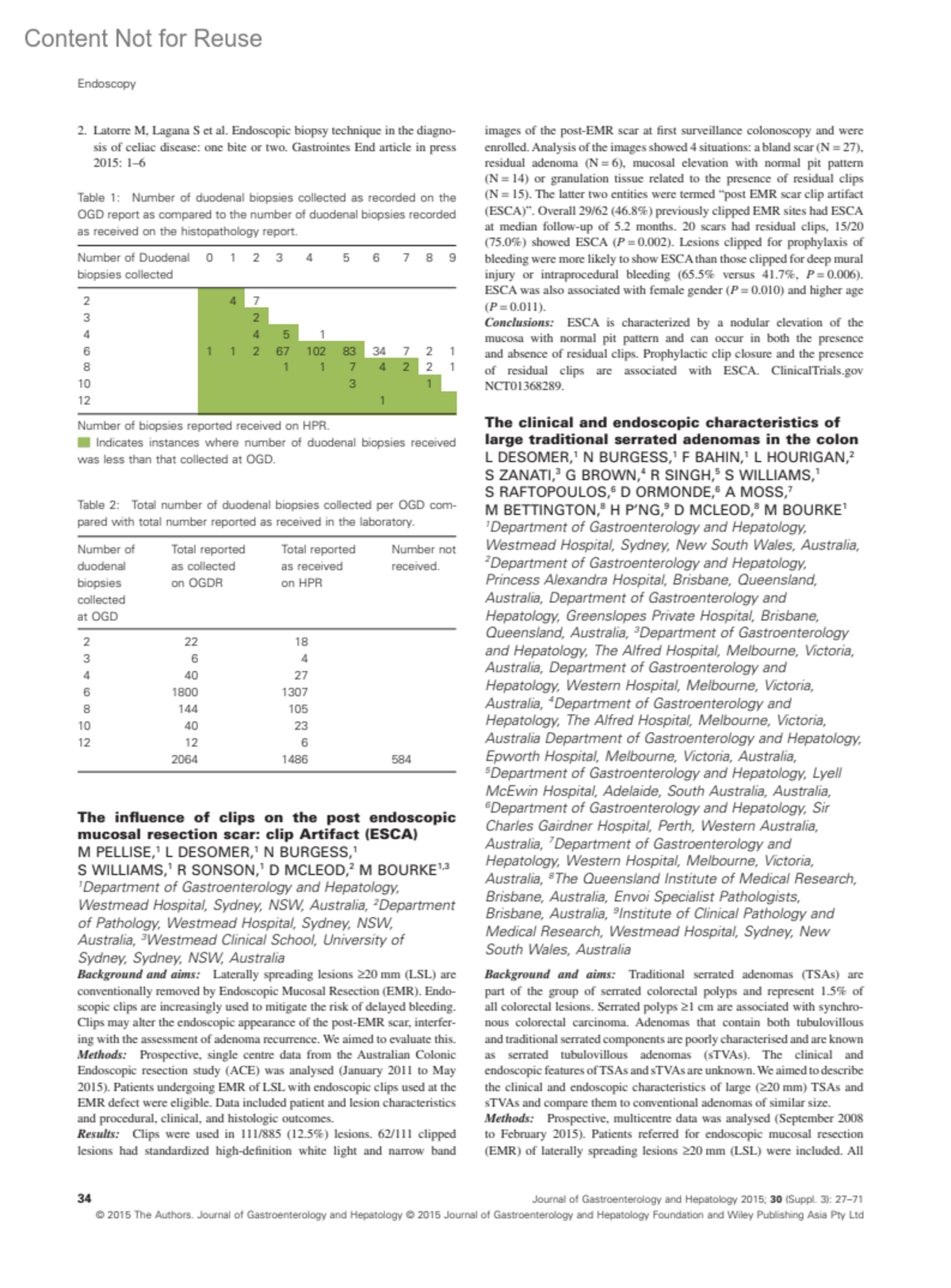 Journal of Gastroenterology & Hepatology 30:p 34, September 2015.