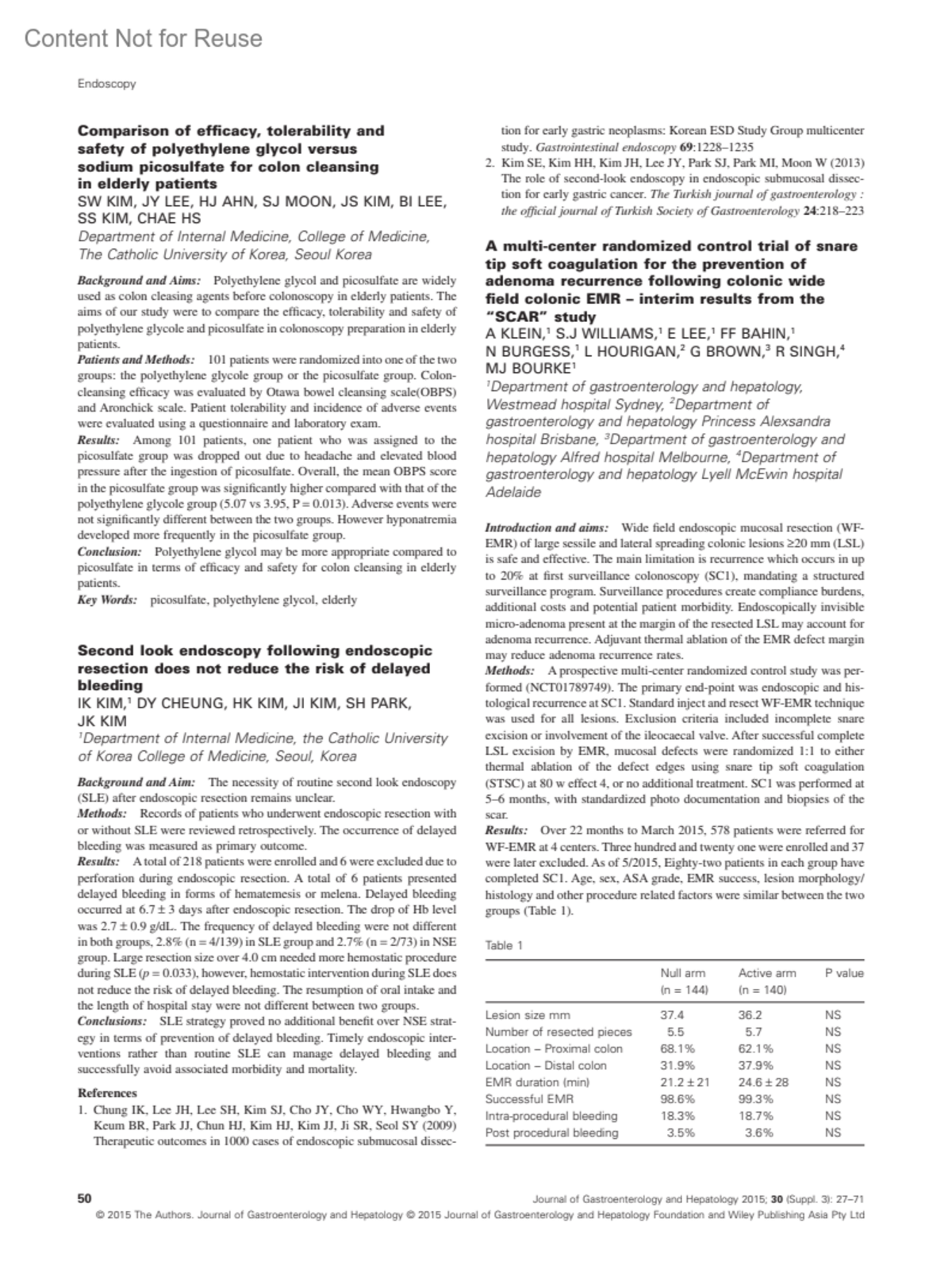 Journal of Gastroenterology & Hepatology 30:p 50, September 2015.