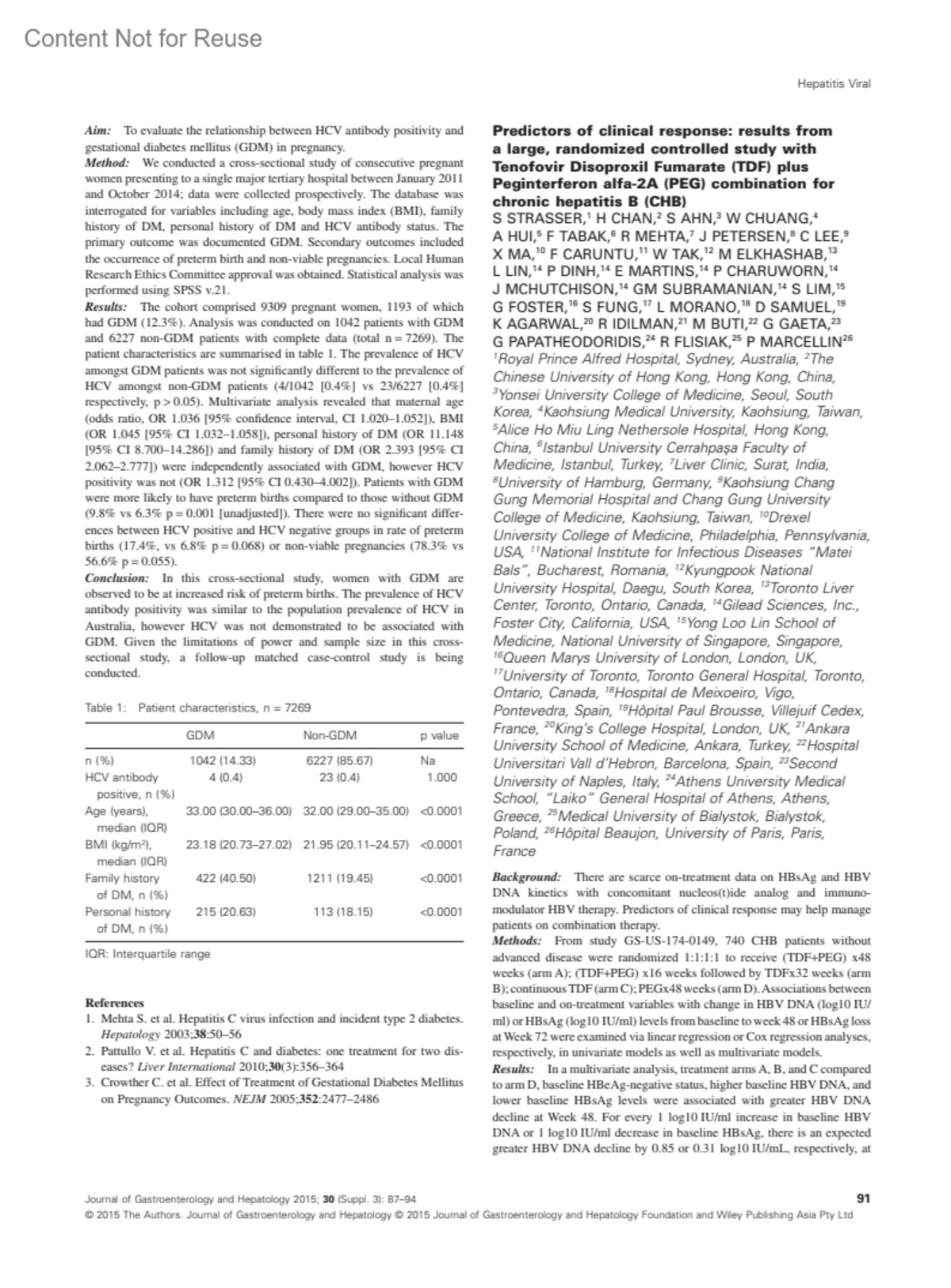 1Royal Prince Alfred Hospital, Sydney, Australia,2The Chinese University of Hong Kong, Hong Kong, China,3Yonsei University College of Medicine, Seoul, South Korea,4Kaohsiung Medical University, Kaohsiung, Taiwan,5Alice Ho Miu Ling Nethersole Hospital, Hong Kong, China,6Istanbul University Cerrahpaşa Faculty of Medicine, Istanbul, Turkey,7Liver Clinic, Surat, India,8University of Hamburg, Germany,9Kaohsiung Chang Gung Memorial Hospital and Chang Gung University College of Medicine, Kaohsiung, Taiwan,10Drexel University College of Medicine, Philadelphia, Pennsylvania, USA,11National Institute for Infectious Diseases “Matei Bals”, Bucharest, Romania,12Kyungpook National University Hospital, Daegu, South Korea,13Toronto Liver Center, Toronto, Ontario, Canada,14Gilead Sciences, Inc., Foster City, California, USA,15Yong Loo Lin School of Medicine, National University of Singapore, Singapore,16Queen Marys University of London, London, UK,17University of Toronto, Toronto General Hospital, Toronto, Ontario, Canada,18Hospital de Meixoeiro, Vigo, Pontevedra, Spain,19Hôpital Paul Brousse, Villejuif Cedex, France,20King's College Hospital, London, UK,21Ankara University School of Medicine, Ankara, Turkey,22Hospital Universitari Vall d'Hebron, Barcelona, Spain,23Second University of Naples, Italy,24Athens University Medical School, “Laiko” General Hospital of Athens, Athens, Greece,25Medical University of Bialystok, Bialystok, Poland,26Hôpital Beaujon, University of Paris, Paris, France
