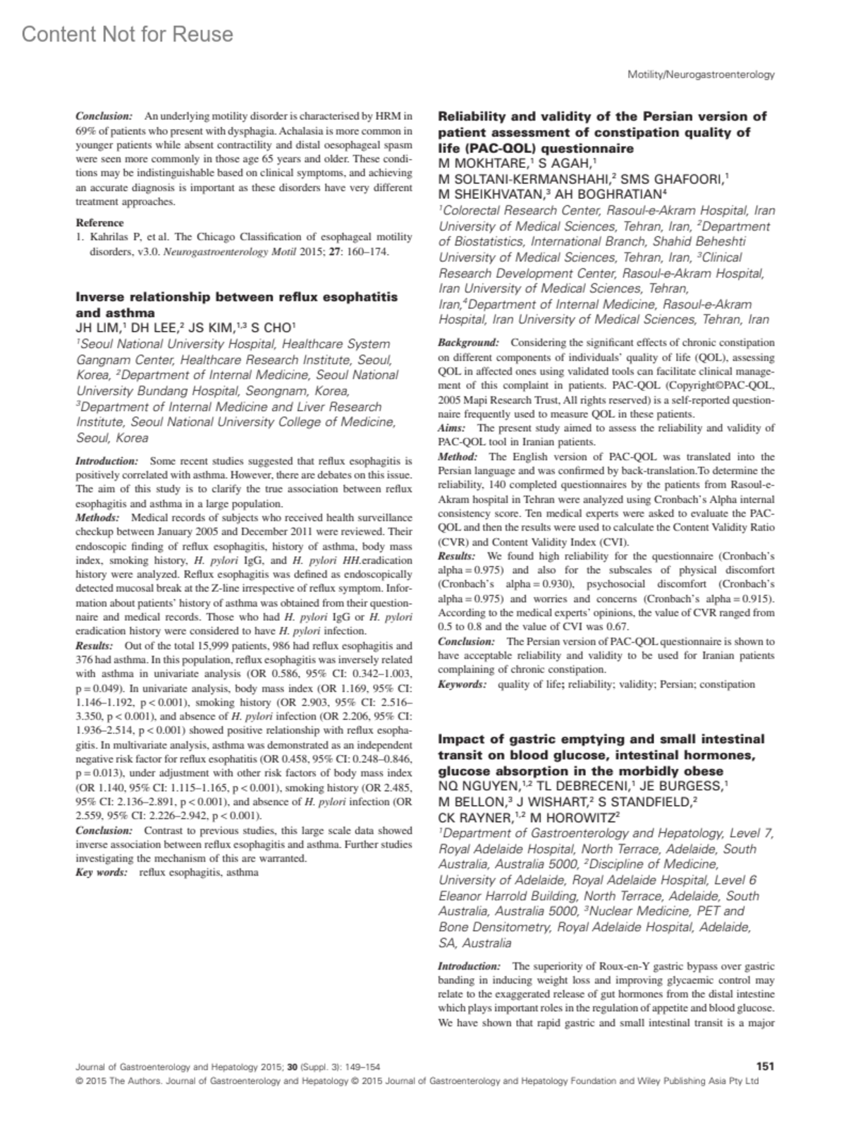 Journal of Gastroenterology & Hepatology 30:p 151-152, September 2015.