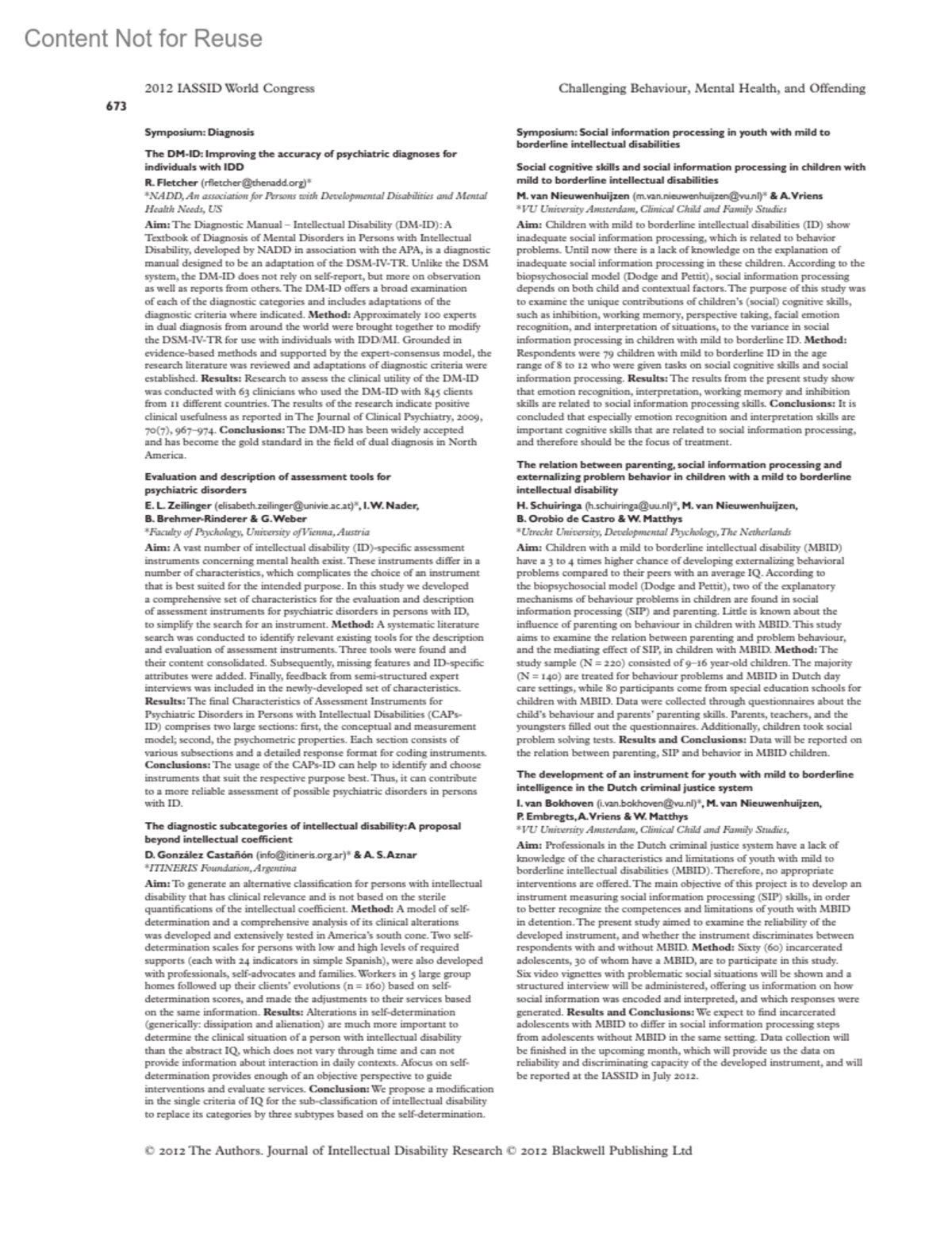 Journal of Intellectual Disability Research 56(8):p 673, July 2012.