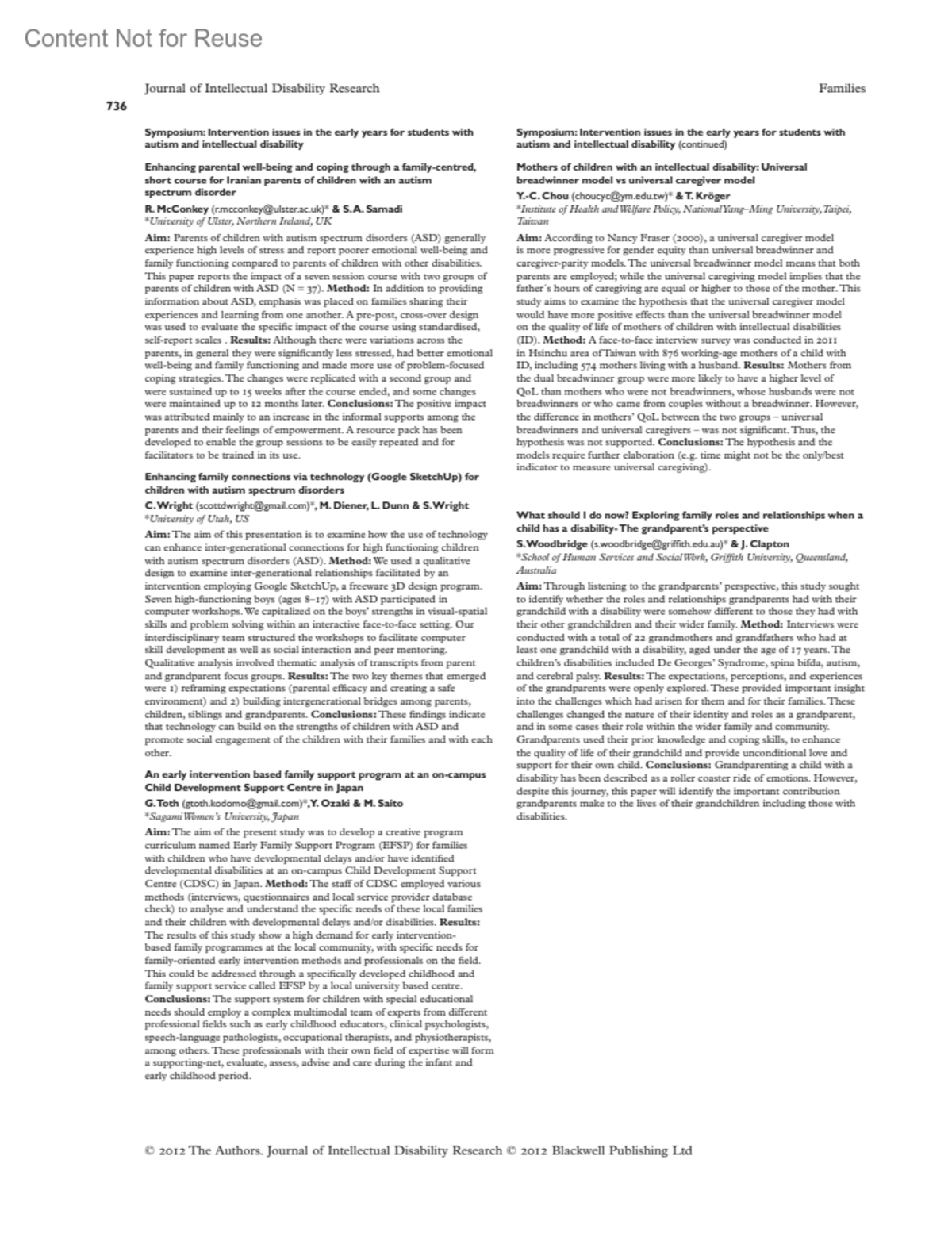 Journal of Intellectual Disability Research 56(8):p 736, July 2012.