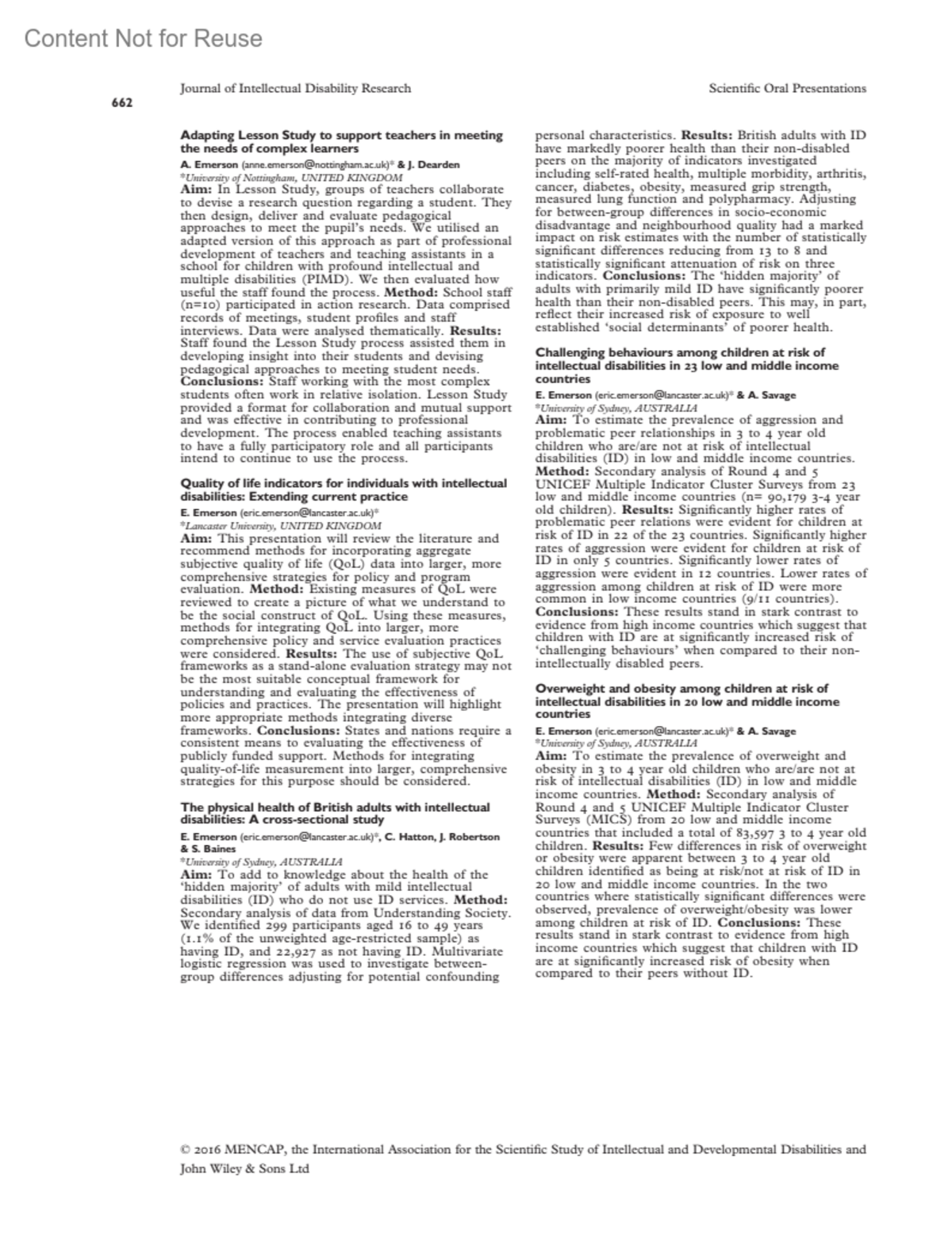 Quality of life indicators for individuals with intellectual disabilities: Extending current practiceEmerson, E.Author informationLancaster University, UNITED KINGDOM*([email protected])Journal of Intellectual Disability Research 60(8):p 662, July-August 2016.Copyright © 2016 John Wiley & Sons, Ltd