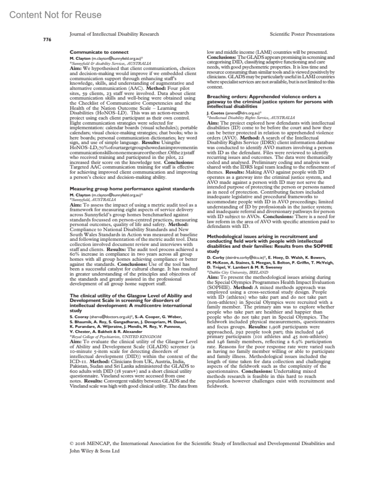 Communicate to connectClayton, M.Author informationSunnyfield & disability Services, AUSTRALIA*([email protected])Journal of Intellectual Disability Research 60(8):p 776, July-August 2016.Copyright © 2016 John Wiley & Sons, Ltd