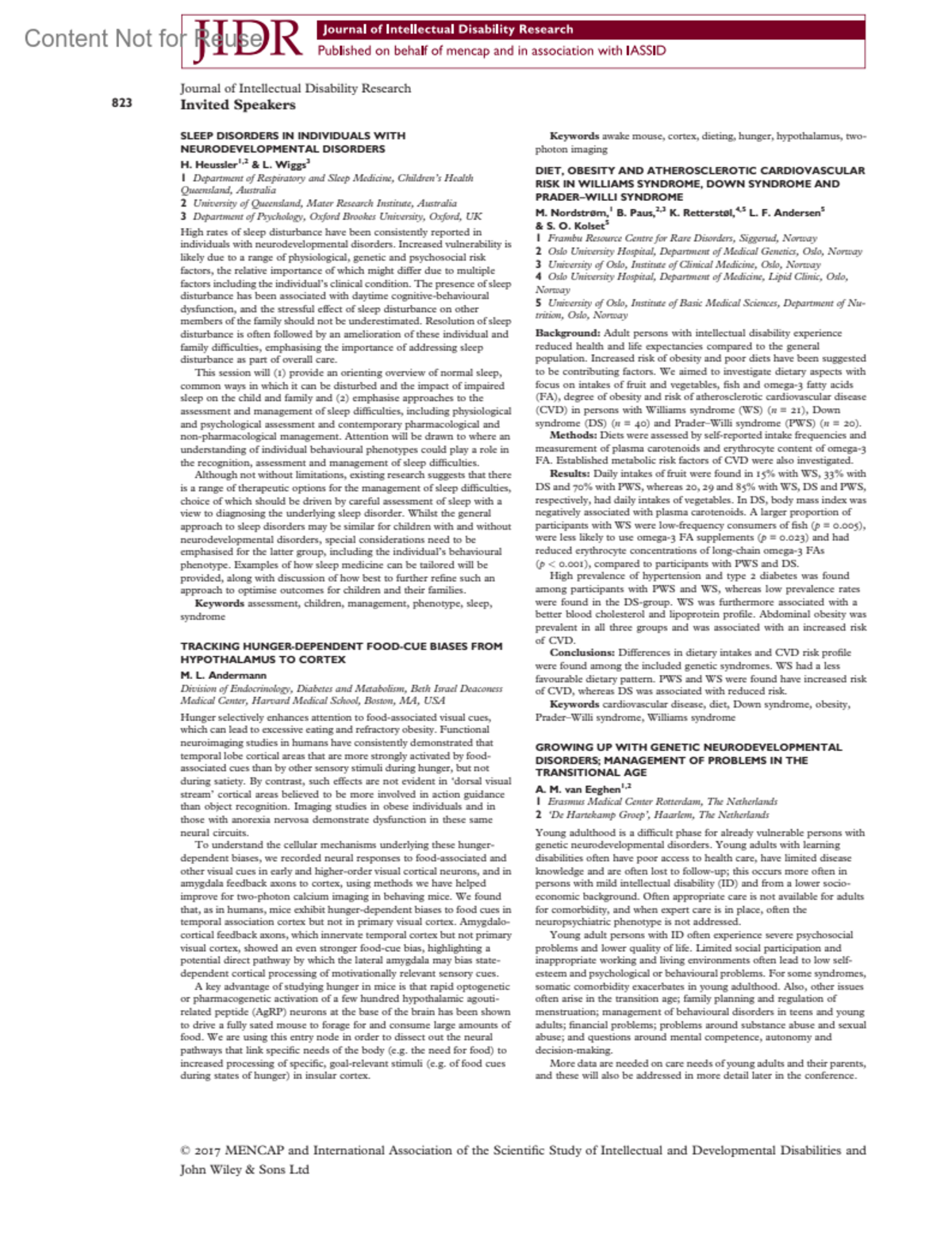 Journal of Intellectual Disability Research 61(9):p 827, September 2017.