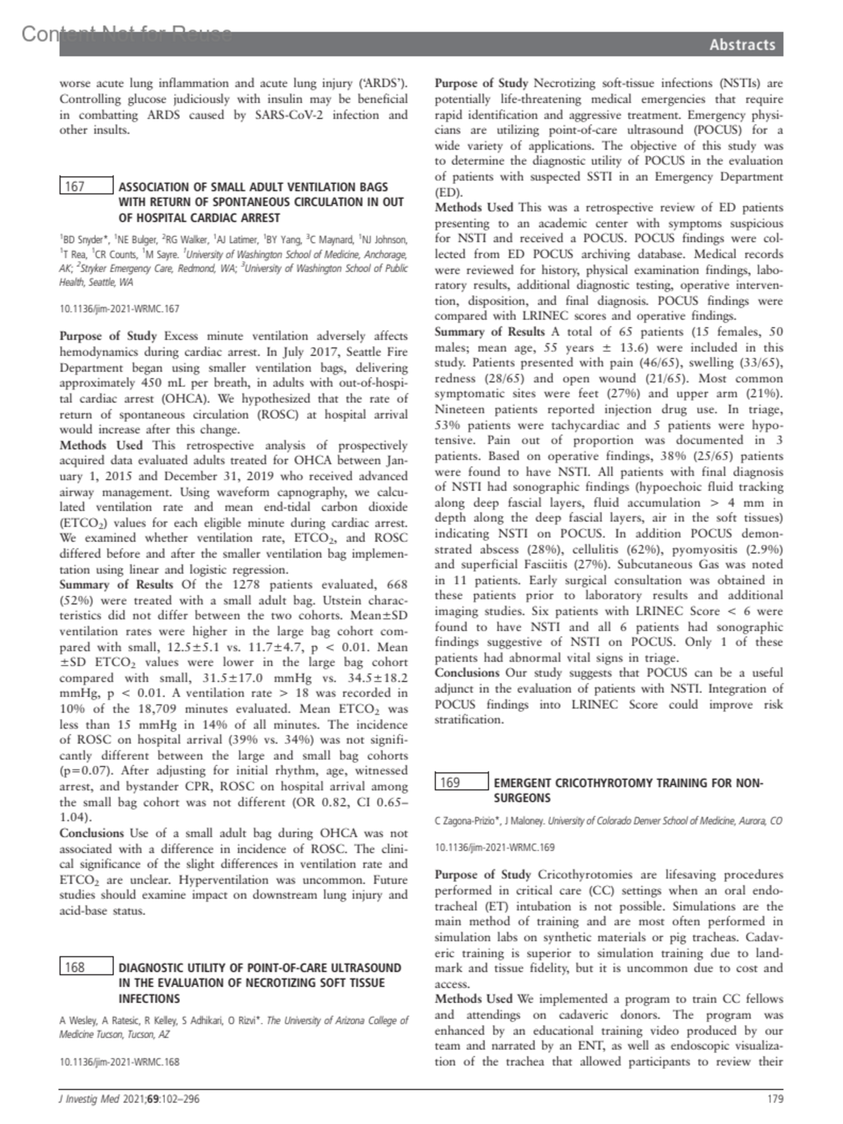 Emergent cricothyrotomy training for non-surgeons169Zagona-Prizio, CMaloney, JAuthor informationUniversity of Colorado Denver School of Medicine, Aurora, COJournal of Investigative Medicine 69(1):p 179-180, January 2021.Copyright © 2021 by the American Federation for Medical Research.