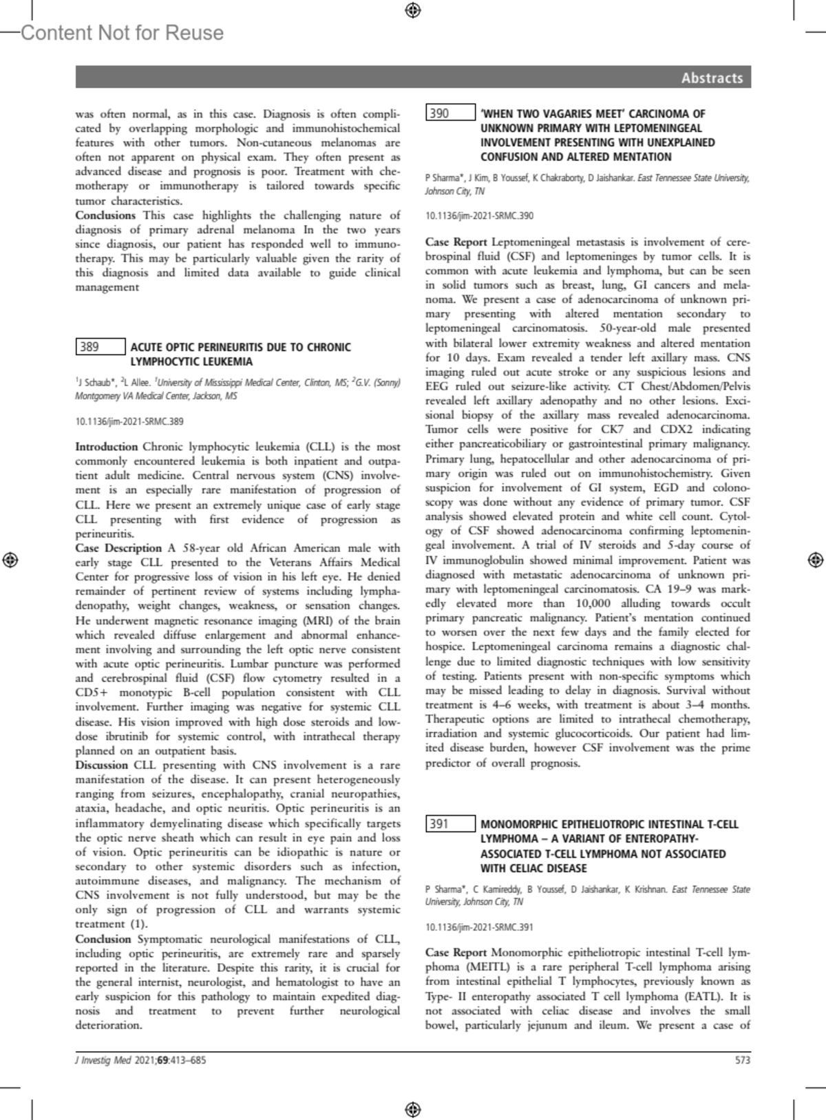 Journal of Investigative Medicine 69(2):p 573, February 2021.