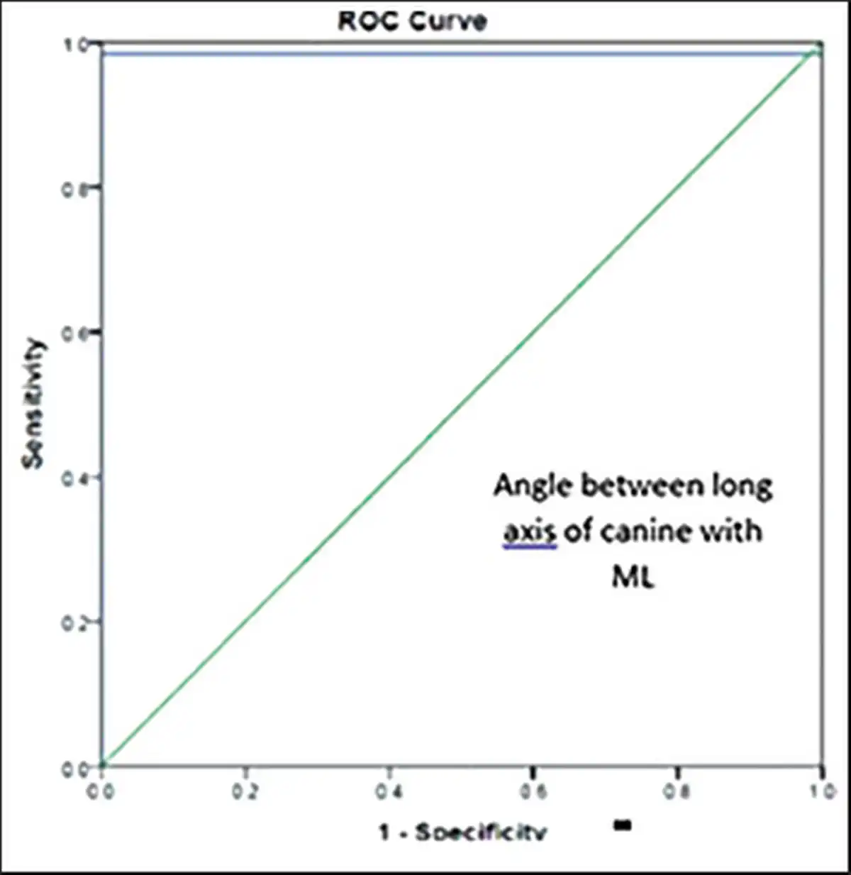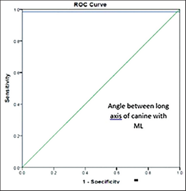 Receiver Operating Characteristic (ROC) Curve for Angle between Long Axis of Canine with Midline (ML).