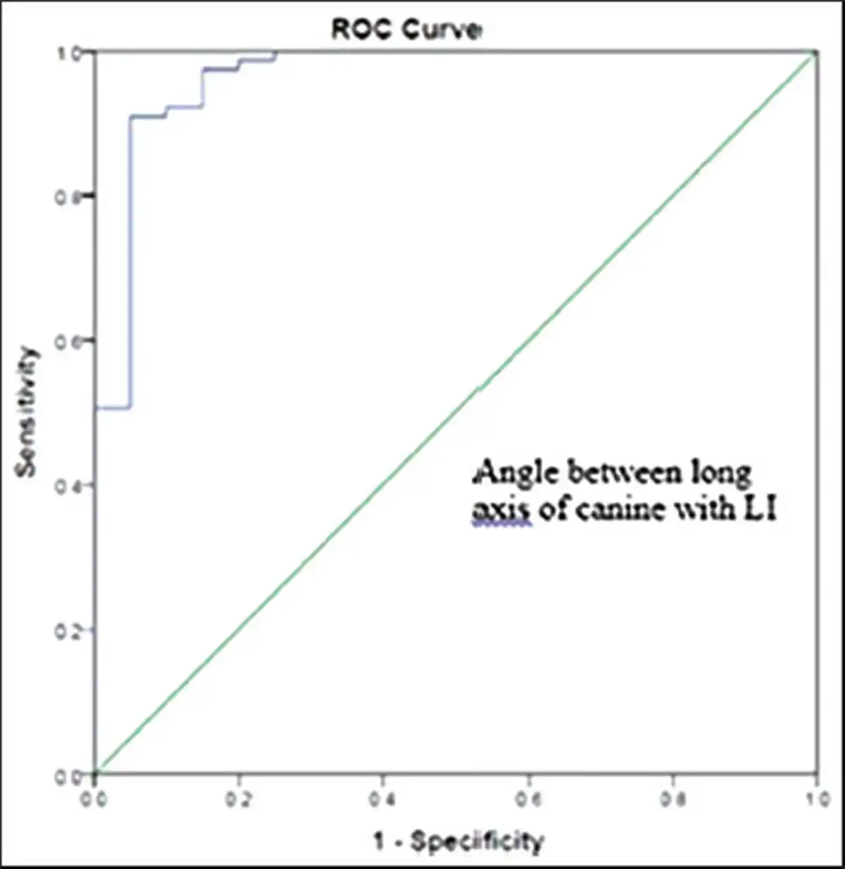 Receiver Operating Characteristic (ROC) Curve for Angle between Long Axis of Canine with Lateral Incisor (LI).