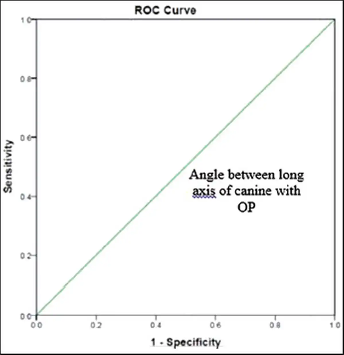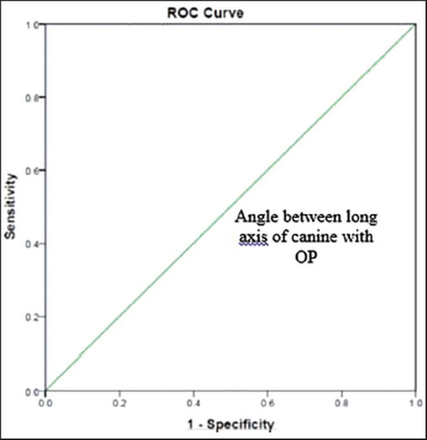 Receiver Operating Characteristic (ROC) Curve for Angle between Long Axis of Canine with Occlusal Plane (OP).