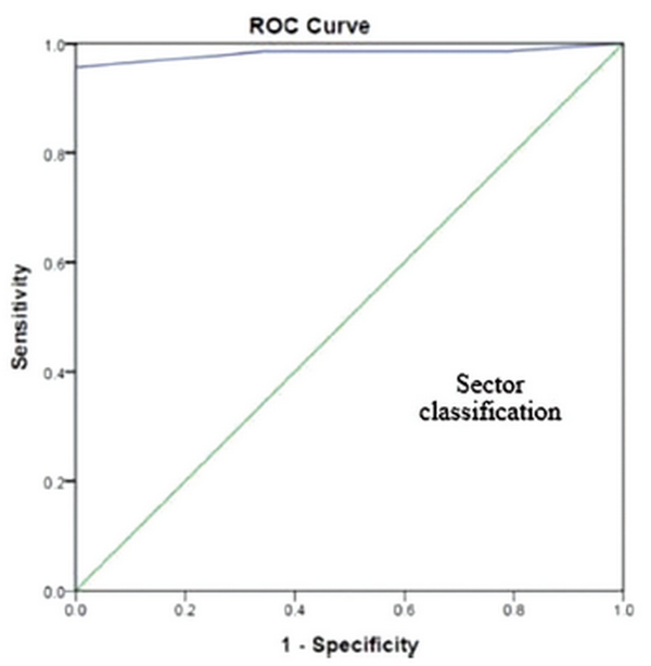The sensitivity, specificity, accuracy, and positive and negative predictive values for angular parameters and sector classification are provided in Table 5.