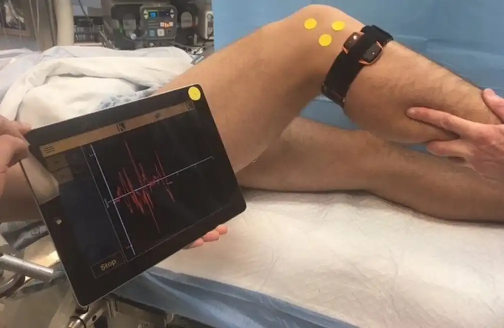 KiRa inertial sensor system for quantifying lateral tibial acceleration during the pivot-shift test.