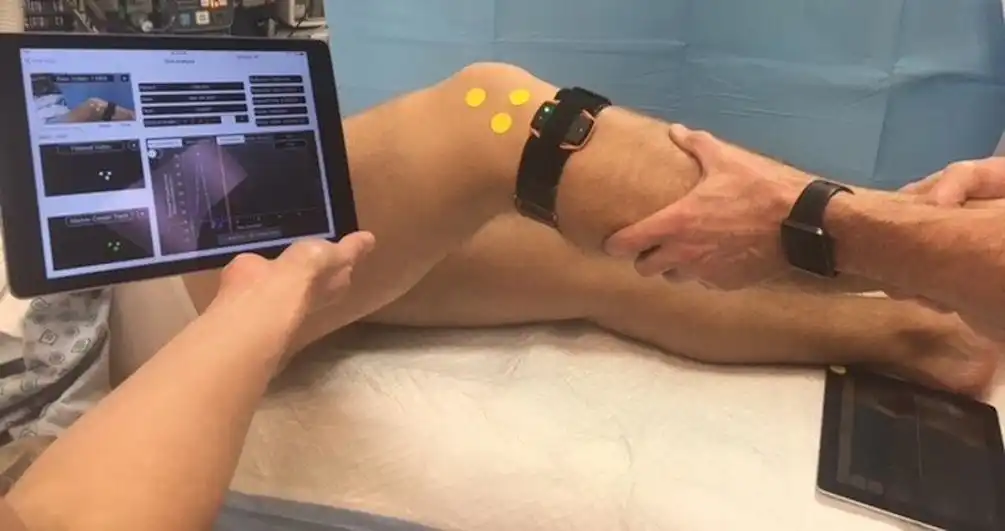 Image analysis system on iPad for quantifying lateral tibial translation during the pivot-shift test.