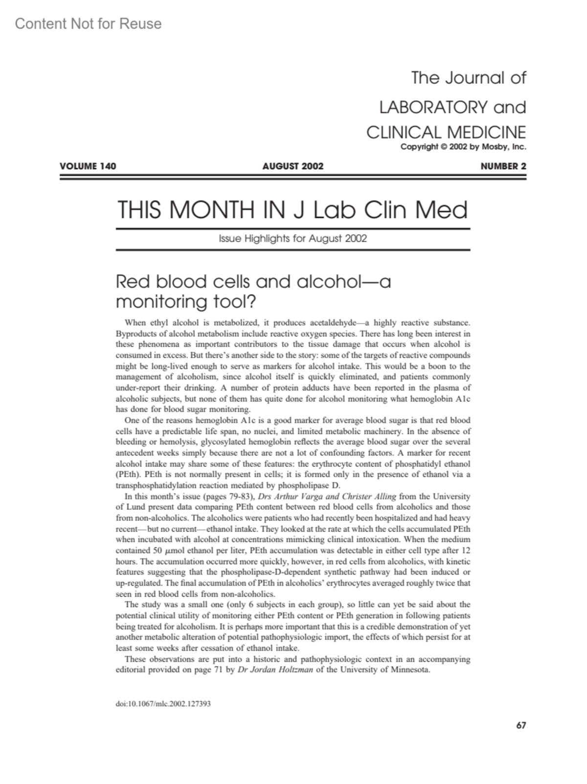 Journal of Laboratory & Clinical Medicine 140(2):p 67-70, August 2002.