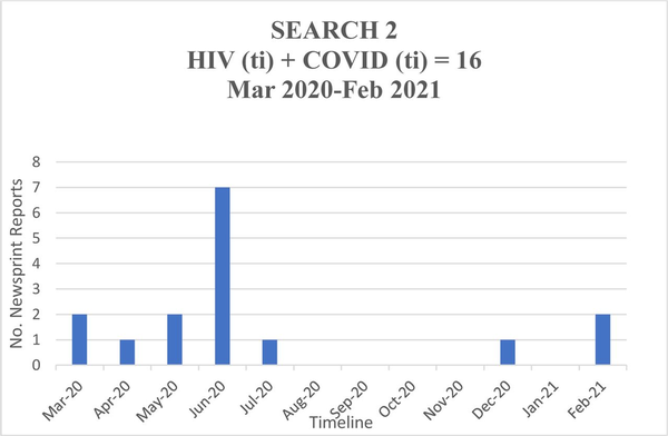 Incidence of ‘HIV’ and ‘Covid’ in headline, March 2020 to February 2021.