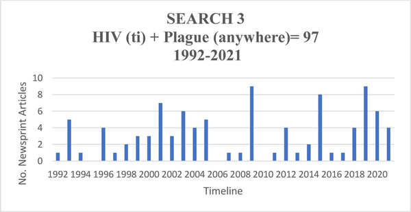 Incidence of ‘HIV’ in headline and ‘plague’ elsewhere in text, 1992–2021.
