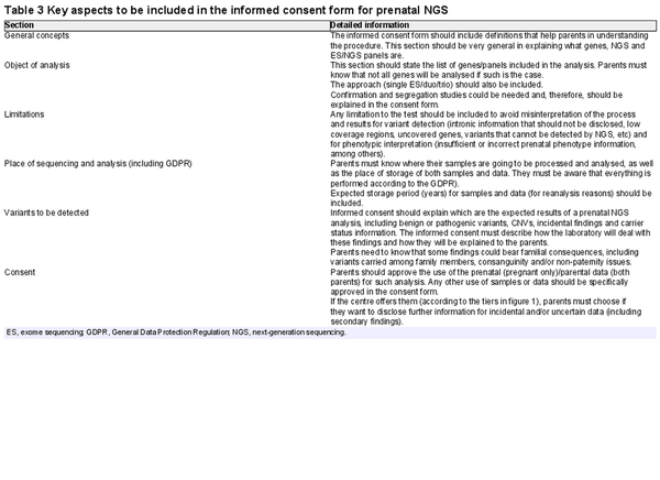 Prenatal setting has some challenges that should be considered to offer an appropriate pre-test and post-test genetic counselling to the families. These are the key issues to be discussed with parents (some of them should be included in the informed consent form, as suggested in table 3):