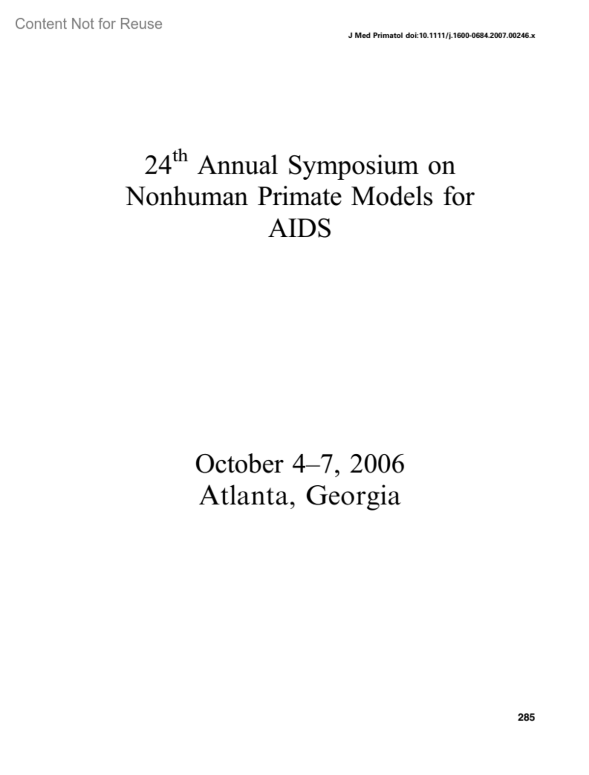 Journal of Medical Primatology 36(5):p 288, August 2007.