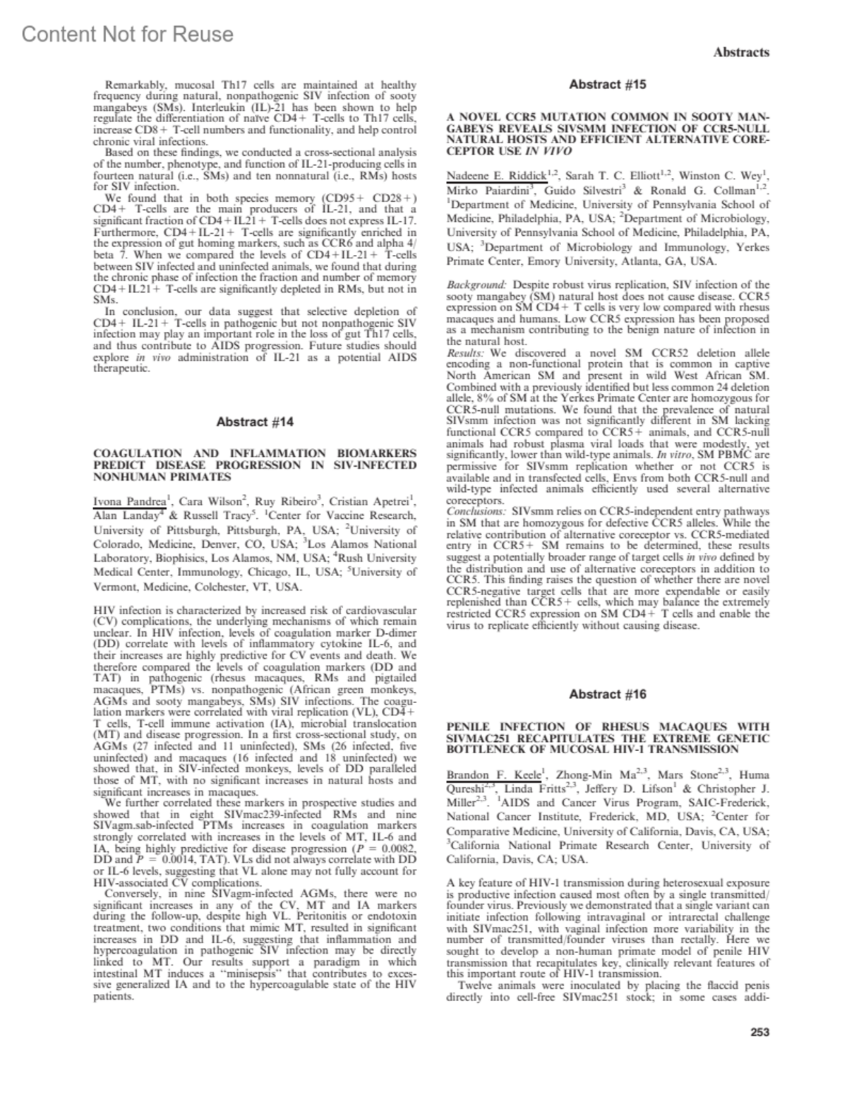 Journal of Medical Primatology 40(4):p 253, August 2011.