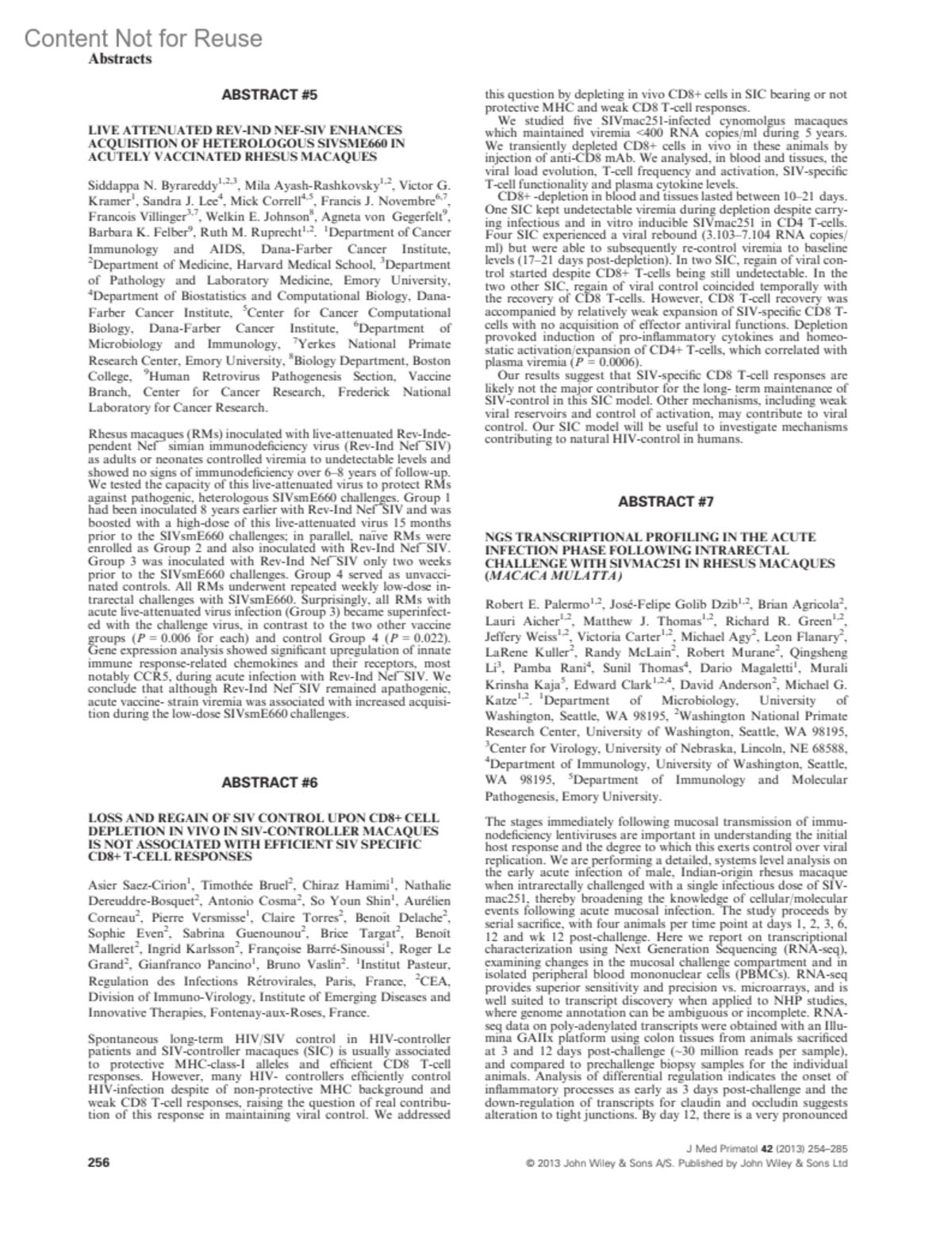 Journal of Medical Primatology 42(5):p 3, October 2013.