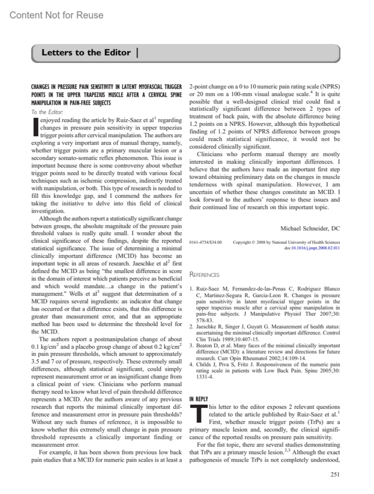 Journal of Manipulative and Physiological Therapeutics 31(3):p 251-252, March-April 2008.