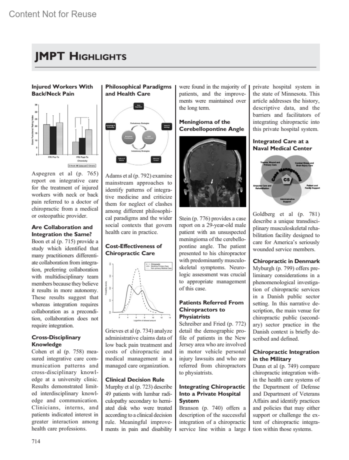 JMPT HighlightsJournal of Manipulative and Physiological Therapeutics 32(9):p 714, November 2009.Copyright ©2009 Elsevier, Inc.