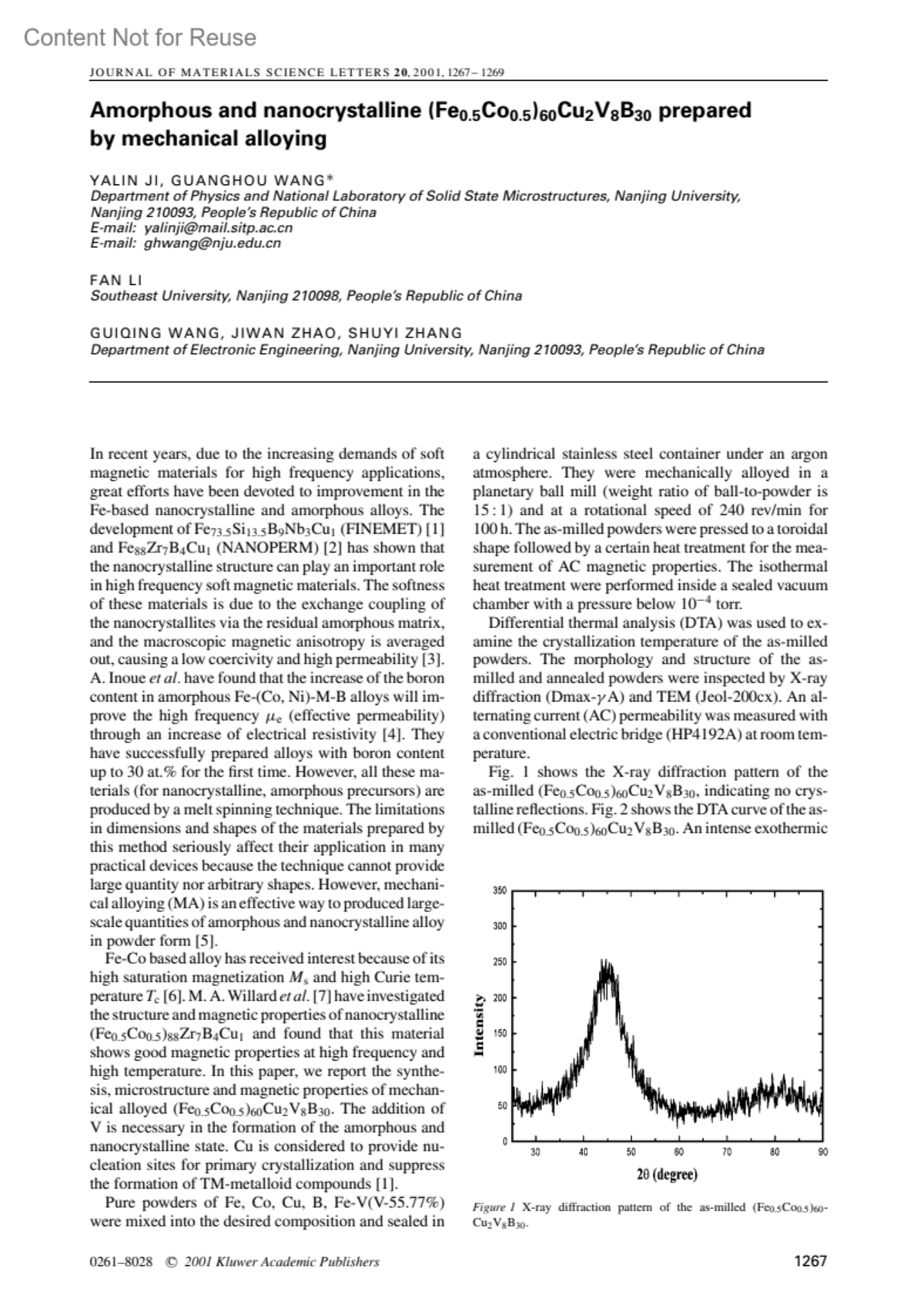Journal of Materials Science Letters 20(13):p 1267-1269, 2001.