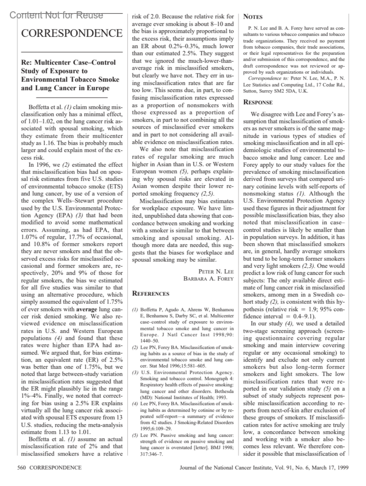 Journal of the National Cancer Institute 91(6):p 560-561, March 17, 1999.