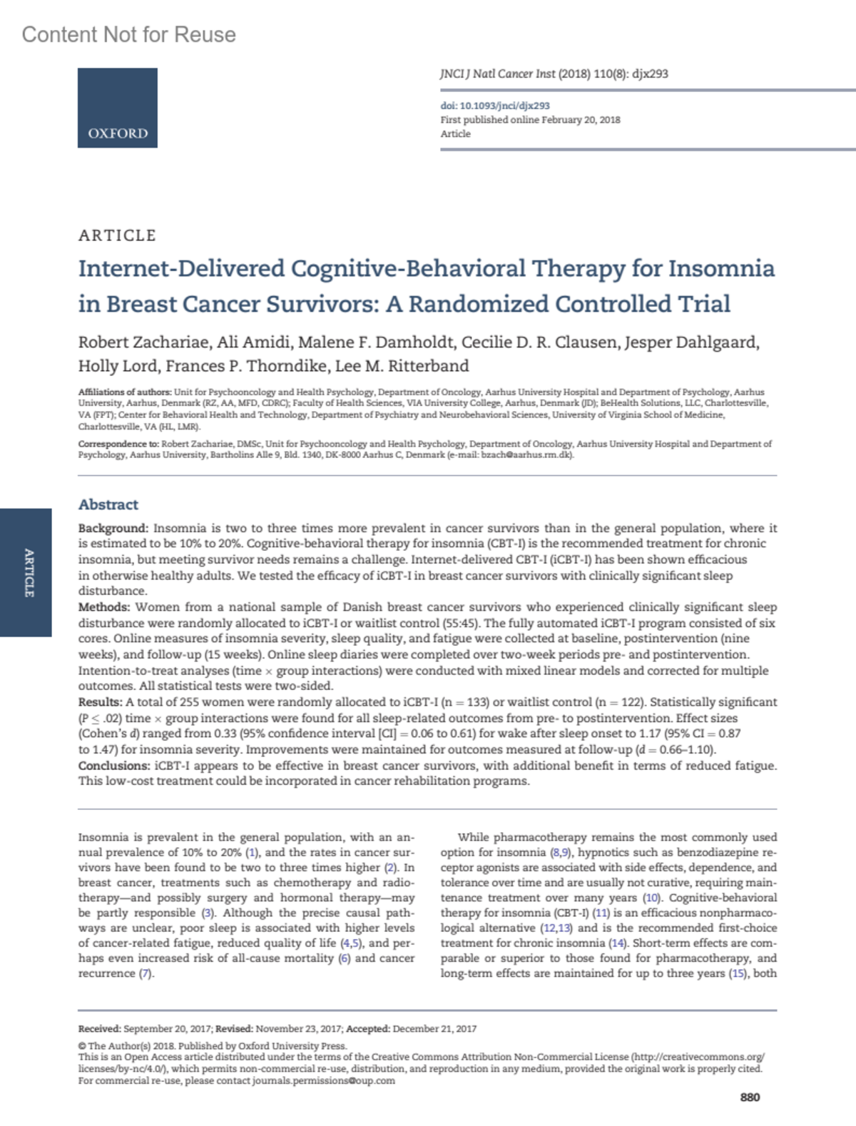Correspondence to: Robert Zachariae, DMSc, Unit for Psychooncology and Health Psychology, Department of Oncology, Aarhus University Hospital and Department of Psychology, Aarhus University, Bartholins Alle 9, Bld. 1340, DK-8000 Aarhus C, Denmark (e-mail: [email protected])