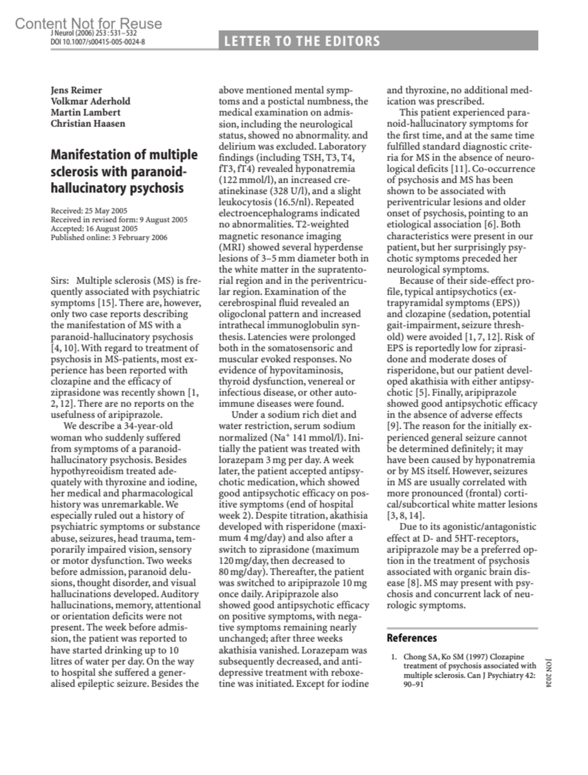Journal of Neurology 253(4):p 531-532, April 2006. | DOI: 10.1007/s00415-005-0024-8
