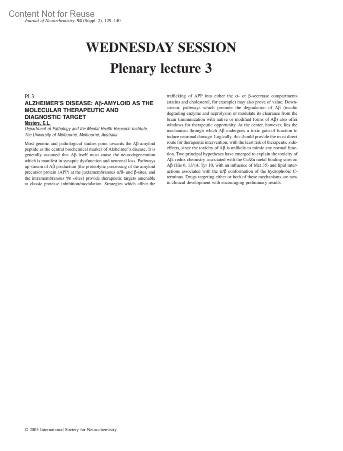 SIGNAL TRANSDUCTION IN THE ASTROGLIAL REACTION TO ISCHEMIC INJURYC11.BLee, M. Y.Choi, J. S.Kim, H. Y.Author informationDept of Anatomy, College of Medicine, The Catholic University of Korea, Seoul, KoreaJournal of Neurochemistry 94:p 130, August 2005.Copyright © 2005 International Society for Neurochemistry