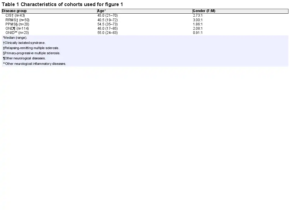 - 7. Becker M, Latarche C, Roman E, et al. No prognostic value of routine cerebrospinal fluid biomarkers in a population-based cohort of 407 multiple sclerosis patients. BMC Neurol 2015;15:79.doi:10.1186/s12883-015-0330-4
