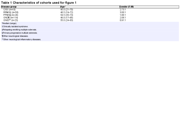 All subjects provided written informed consent, in accordance with the Declaration of Helsinki and were not on disease-modifying therapies at the time of sampling and had not received steroids for at least 3 months prior to sampling.