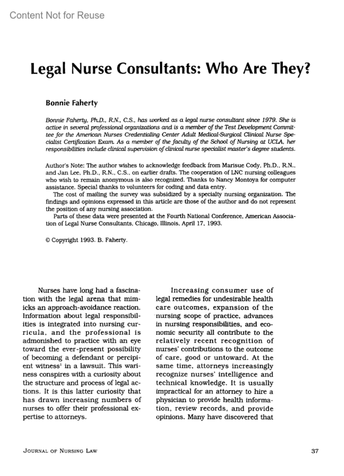 Parts of these data were presented at the Fourth National Conference, American Association of Legal Nurse Consultants, Chicago, Illinois, April 17, 1993.