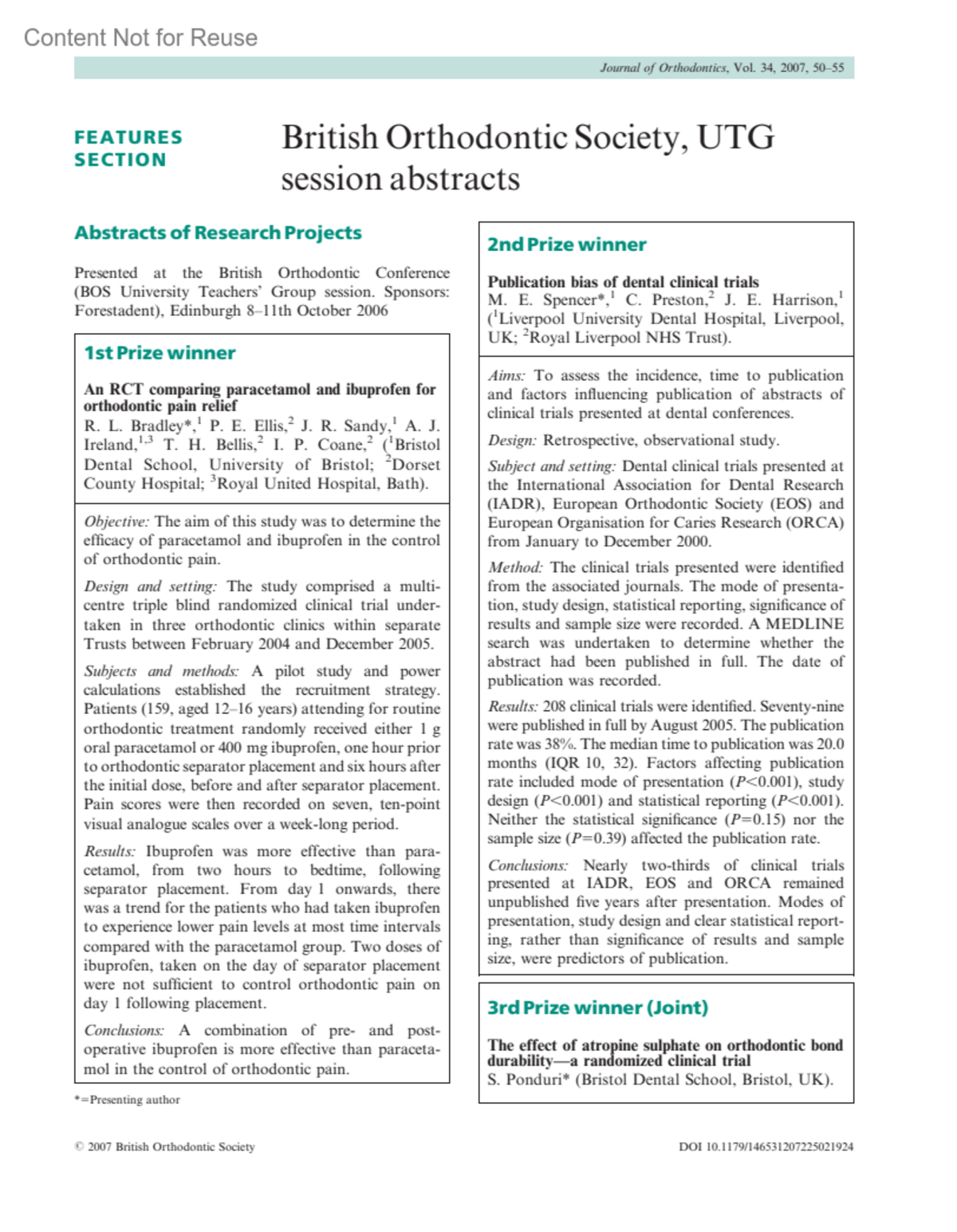 British Orthodontic Society, UTG Session AbstractsJournal of Orthodontics 34(1):p 50-55, March 2007. | DOI: 10.1179/146531207225021924Copyright ©2007Sage Publications