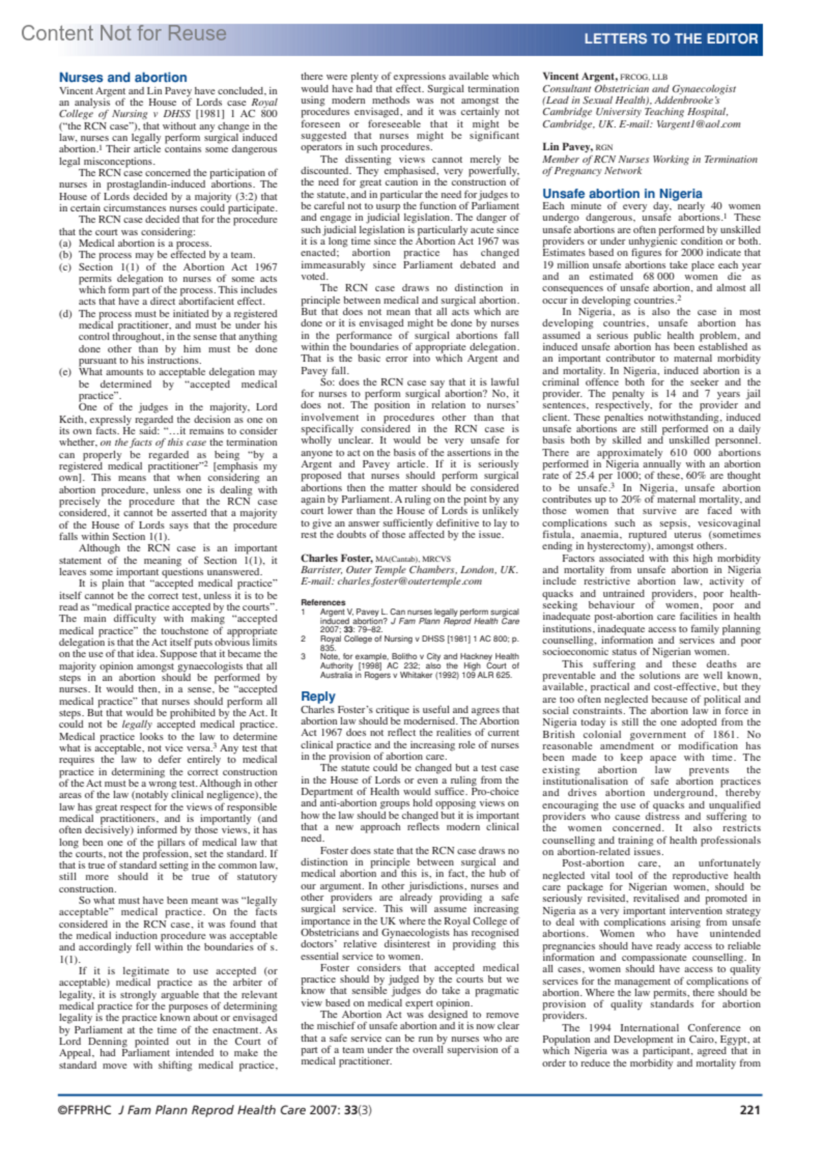 Journal of Family Planning & Reproductive Health Care 33(3):p 221, July 2007.