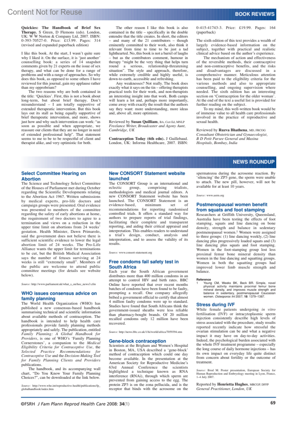 Quickies: The Handbook of Brief Sex Therapy.Quilliam, Susan BA, Cert Ed, MNLPAuthor informationFreelance Writer, Broadcaster and Agony Aunt, Cambridge, UKJournal of Family Planning & Reproductive Health Care 34(1):p 68, January 2008.Copyright © 2008 BMJ Publishing Group Ltd