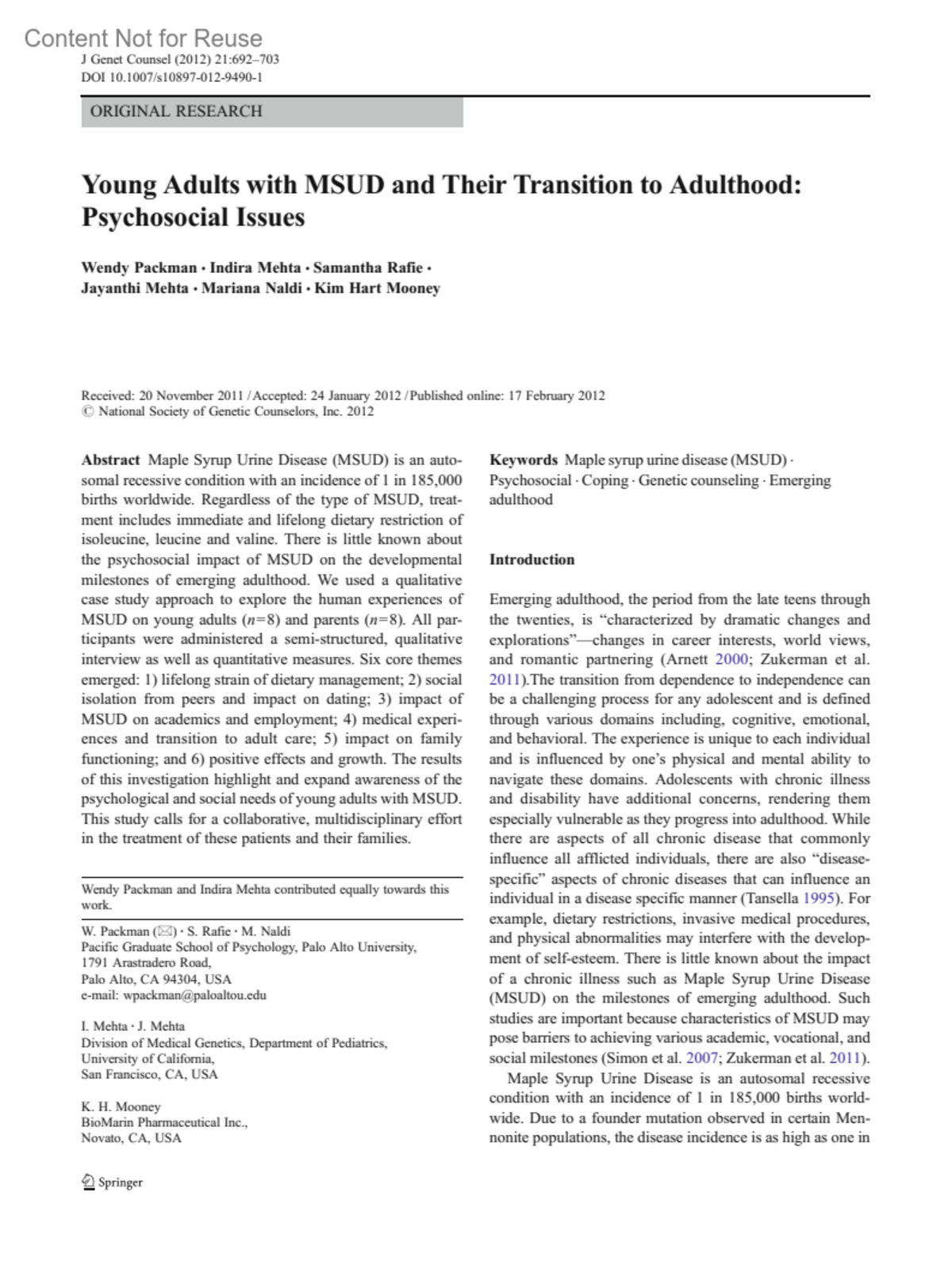 Journal of Genetic Counseling 21(5):p 692-703, October 2012. | DOI: 10.1007/s10897-012-9490-1