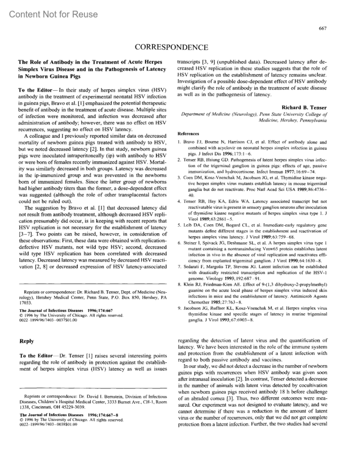 Journal of Infectious Diseases 174(3):p 667-668, September 1996.