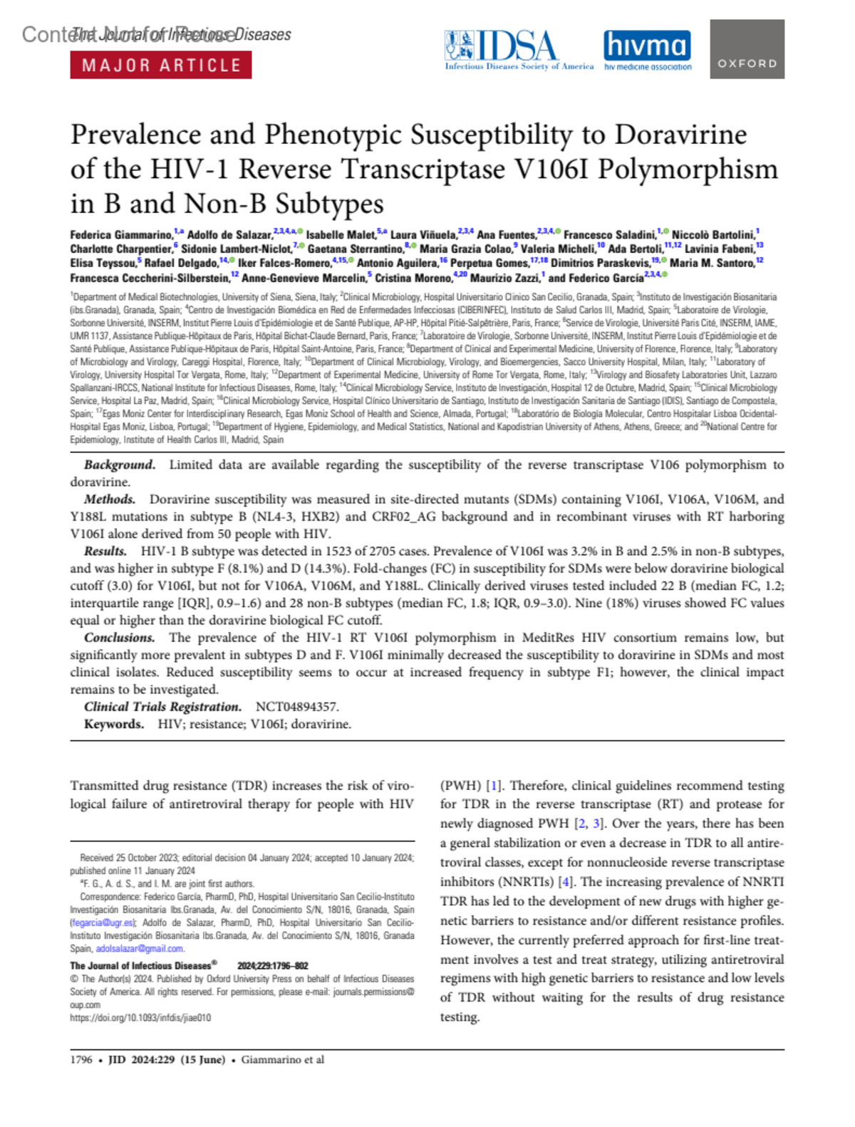 Potential conflicts of interest. E. T. has received funds for attending meetings and/or travel from Moderna. C. C. has received funds for attending symposia, speaking, organizing educational activities, and travel grants from Gilead Sciences, ViiV Healthcare, and Merck Sharp and Dohme. A. A. has received funds for attending symposia, speaking, organizing educational activities, and travel grants from Gilead Sciences, Roche, Vircell, and Abbvie. R. D. has served as a speaker, a consultant, and an advisory board member for GSK, Gilead, Merck Sharp and Dohme, Hologic, and ViiV Healthcare. S. L.-N. has received funds for attending symposia, speaking, organizing educational activities, and travel grants from Gilead Sciences, Merck Sharp and Dohme, and ViiV Healthcare. P. G. has received funds for attending symposia, speaking, and travel grants from Gilead Sciences, Merck Sharp and Dohme, and ViiV Healthcare. D. P. has received funds for attending meetings and/or travel from Moderna. M. M. S. has received funds for attending symposia, speaking, and organizing educational activities from ViiV Healthcare, Janssen-Cilag, MSD, and Theratechnologies. F. C.-S. has received funds for attending symposia, speaking, organizing educational activities, travel grants, advisory/consulting, and/or research grants from Abbvie, Gilead Sciences, Janssen-Cilag, Merck Sharp and Dohme, Theratechnologies, and ViiV Healthcare. A.-G. M. has received funds for attending symposia, speaking, and research grants from VIIV Healthcare, Gilead Sciences, and Merck Sharp and Dohme. M. Z. reports research grants from MSD, Theratechnologies, and ViiV Healthcare; consulting fees for advisory boards from MSD, Gilead Sciences, Theratechnologies, and ViiV Healthcare; support for attending meetings from Gilead Sciences and Theratechnologies; and receipt of drug for in vitro studies from Theratechnologies and MSD, outside the submitted work. F. G. has received funds for attending symposia, speaking, and research grants from Abbvie, Gilead, Merck/MSD, Roche, Hologic, Thera, Vircell, and Seegene. All other authors report no potential conflicts.