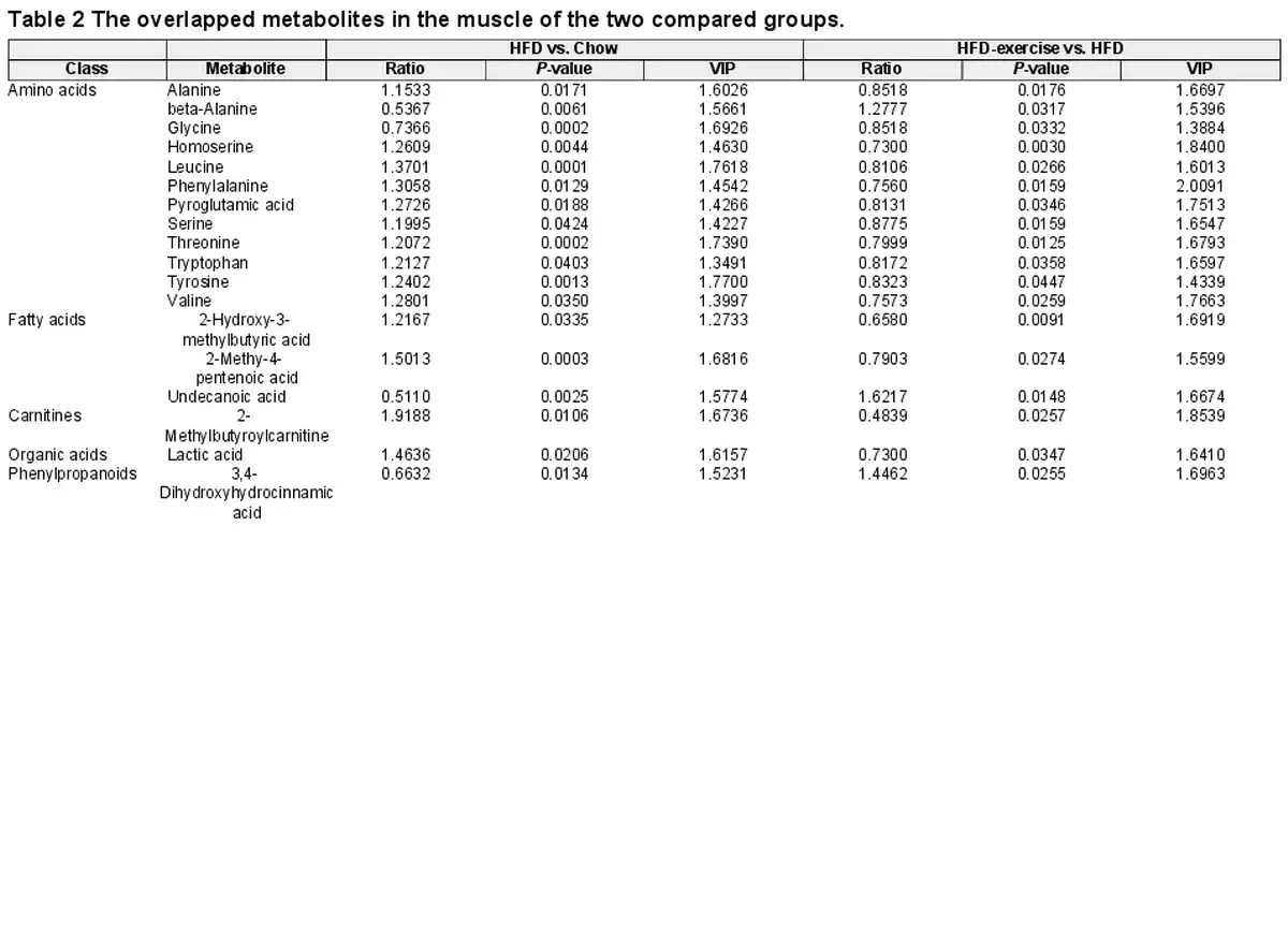 In conclusion, in this study, metabolic and transcriptional profiling revealed that exercise training reverses HFD-induced changes in metabolism and transcription. Several amino acid metabolism pathways and muscle development pathways impacted by exercise training are implicated with important roles in the improvement of obesity and T2DM.